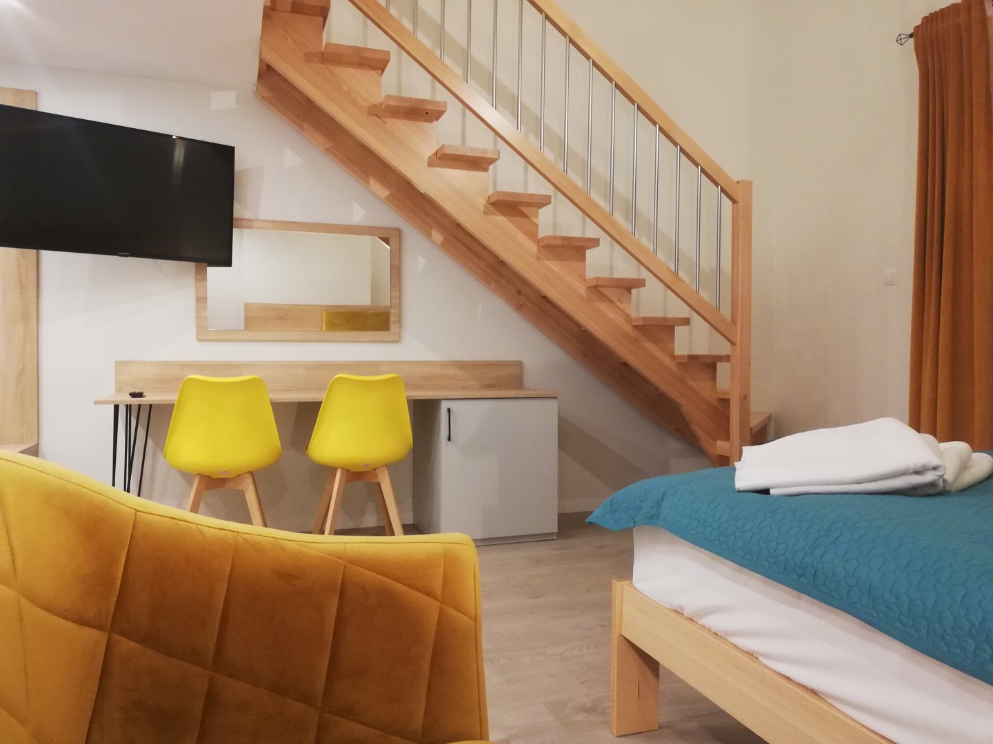Pokój dwuosobowy z dostawką na antresoli, z łazienką i balkonem
